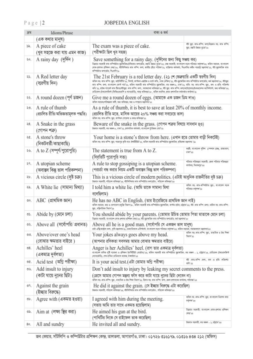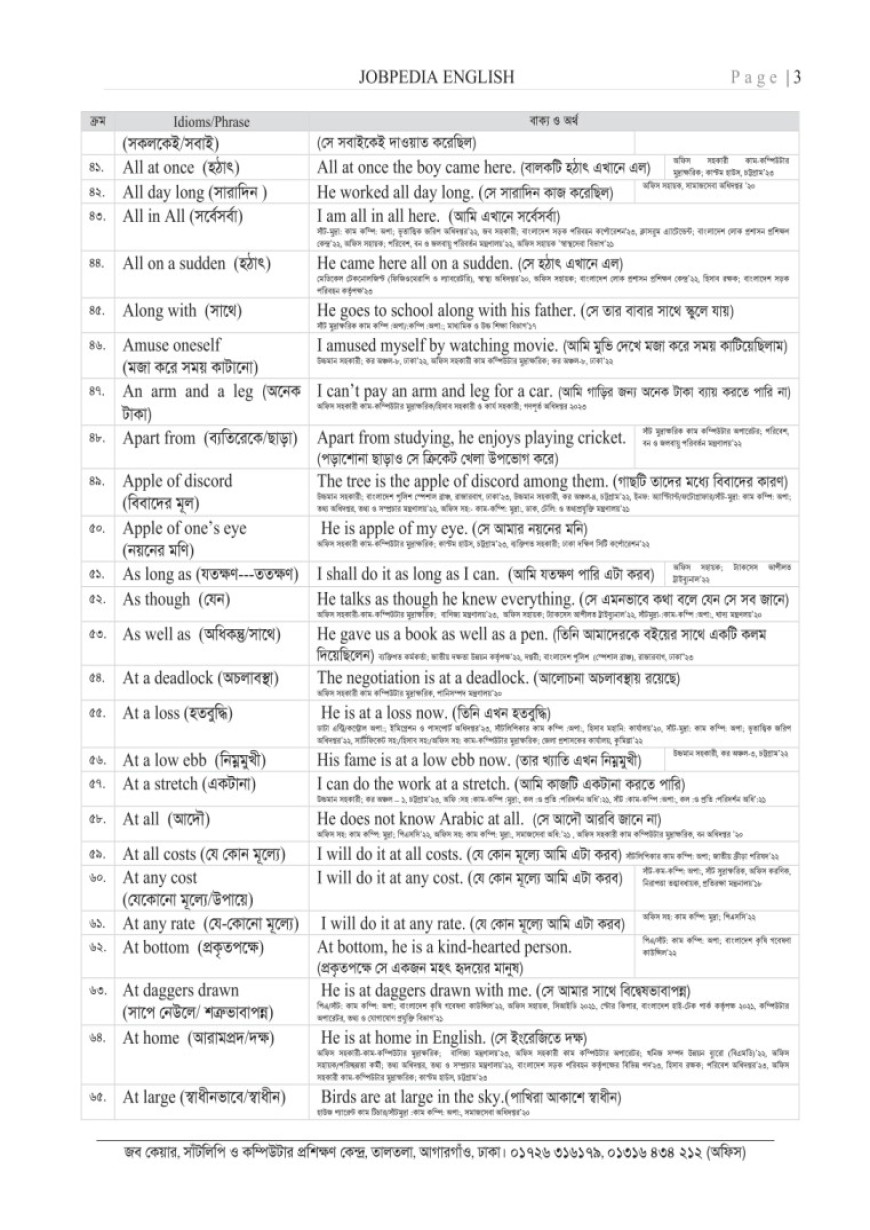 অফিস সহকারী, সাঁটলিপিকার, কম্পিউটার অপারেটরসহ সরকারী ২য় ও ৩য় শ্রেণির বিভিন্ন পদের নিয়োগ পরীক্ষার ইংরেজি সহায়িকা। ১৫ বছরে সরকারি নিয়োগ পরীক্ষায় প্রশ্ন সংযোজন এবং প্রতিটি বিষয় সহজ ব্যাখ্যাসহ সাজেশনভিত্তিক উপস্থাপন করা হয়েছে। যেমন- Idioms এর বাংলা অর্থ এবং বাংলা অর্থসহ সহজ সেন্টেন্স দেওয়া হয়েছে। Correction, Voice, Narration, Article, Translation ইত্যাদি সহজ ব্যাখ্যাসহ উপস্থাপন করা হয়েছে। ইংরেজিতে দুর্বলদের জন্য বইটি বিশেষভাবে সহায়ক। দ্রুত প্রস্তুতির জন্য অতিরিক্ত আলোচনা এবং পুনরাবৃত্তি পরিহার করা হয়েছে। বইটি রিডিং-ফ্রেন্ডলি এবং নির্ভুল।