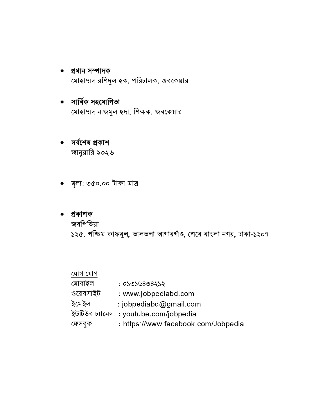 ‘জবপিডিয়া বাংলা’ সরকারি ১০-২০তম গ্রেডের অন্যতম একটি নিয়োগ সহায়িকা। বইটি সম্পূর্ণরূপে নিয়োগ পরীক্ষার চাহিদা মাথায় রেখে প্রণয়ন করা হয়েছে। এতে শুধু নিয়োগ পরীক্ষায় আসা অধ্যায়গুলোই সংযোজন করা হয়েছে এবং অপ্রাসঙ্গিক বিষয় পরিহার করা হয়েছে। বইটির প্রতিটি অধ্যায়ের সঙ্গে পূর্ববর্তী নিয়োগ পরীক্ষায় আসা প্রশ্নের রেফারেন্স যুক্ত থাকায় শিক্ষার্থীরা সহজেই গুরুত্বপূর্ণ অংশ চিহ্নিত করতে পারে। তাছাড়া বইটিতে নবম ও দশম শ্রেণির বোর্ড বইয়ের প্রশ্ন আলাদাভাবে উপস্থাপন করায় শিক্ষার্থীদের আলাদা বই পড়ার ঝামেলা নেই। কারক, সমাস, বানানশুদ্ধি, প্রকৃতি ও প্রত্যয়ের মতো গুরুত্বপূর্ণ ব্যাকরণিক অধ্যায়গুলো এমনভাবে সহজ ভাষায় ব্যাখ্যা করা হয়েছে, যাতে একজন দুর্বল শিক্ষার্থীও শুধু এই বই পড়ে আত্মবিশ্বাসের সঙ্গে প্রস্তুতি নিতে পারে।