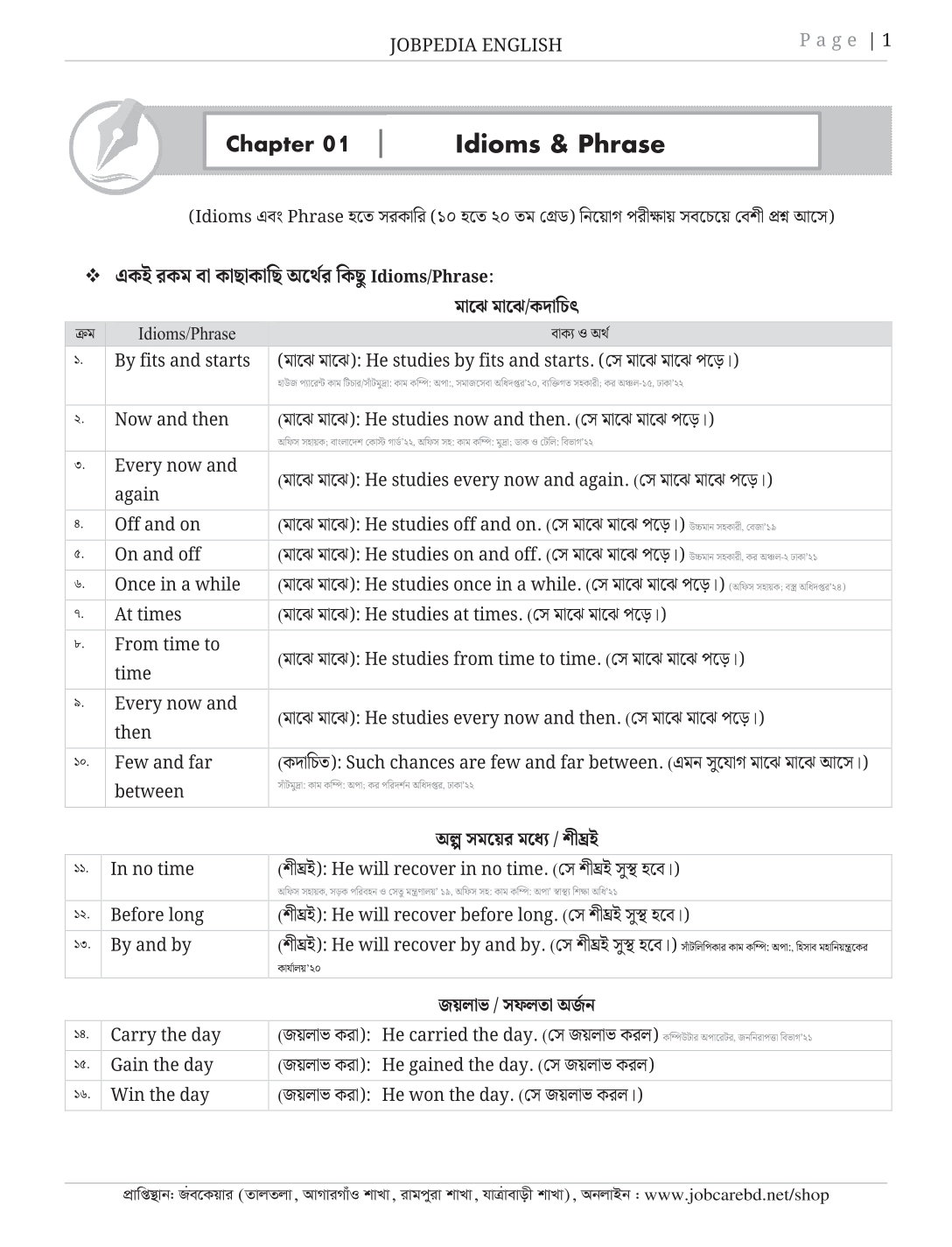 অফিস সহকারী, সাঁটলিপিকার, কম্পিউটার অপারেটরসহ সরকারী ২য় ও ৩য় শ্রেণির বিভিন্ন পদের নিয়োগ পরীক্ষার ইংরেজি সহায়িকা। ১৫ বছরে সরকারি নিয়োগ পরীক্ষায় প্রশ্ন সংযোজন এবং প্রতিটি বিষয় সহজ ব্যাখ্যাসহ সাজেশনভিত্তিক উপস্থাপন করা হয়েছে। যেমন- Idioms এর বাংলা অর্থ এবং বাংলা অর্থসহ সহজ সেন্টেন্স দেওয়া হয়েছে। Correction, Voice, Narration, Article, Translation ইত্যাদি সহজ ব্যাখ্যাসহ উপস্থাপন করা হয়েছে। ইংরেজিতে দুর্বলদের জন্য বইটি বিশেষভাবে সহায়ক। দ্রুত প্রস্তুতির জন্য অতিরিক্ত আলোচনা এবং পুনরাবৃত্তি পরিহার করা হয়েছে। বইটি রিডিং-ফ্রেন্ডলি এবং নির্ভুল।